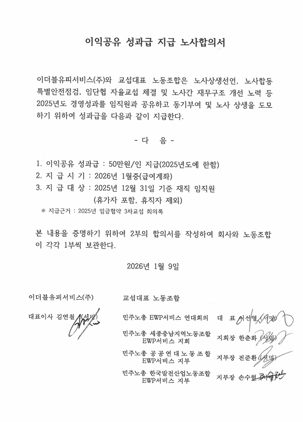 제목 2025년 EWP서비스(주) 임금협약 체결 안내